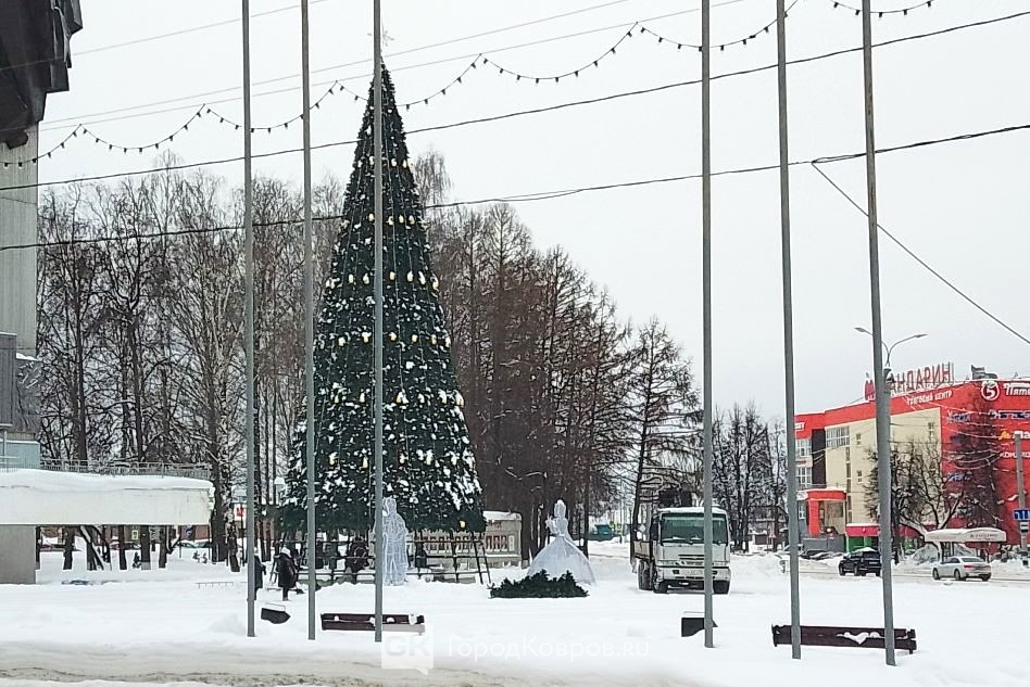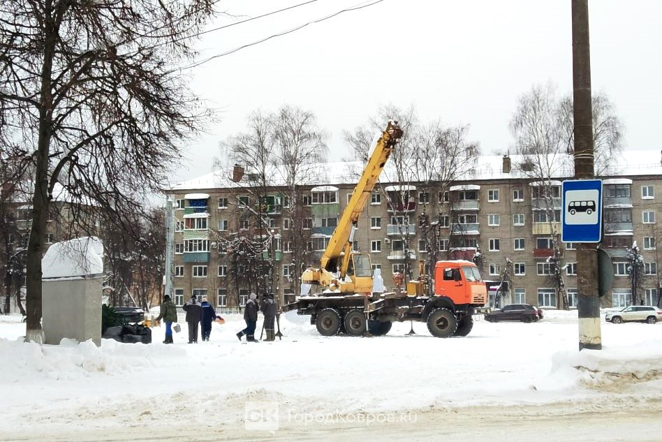 На площади 200-летия сегодня утром начали разбирать новогоднюю ёлку. К середине дня демонтаж завершился, искусственную хвою уложили и готовились увезти.