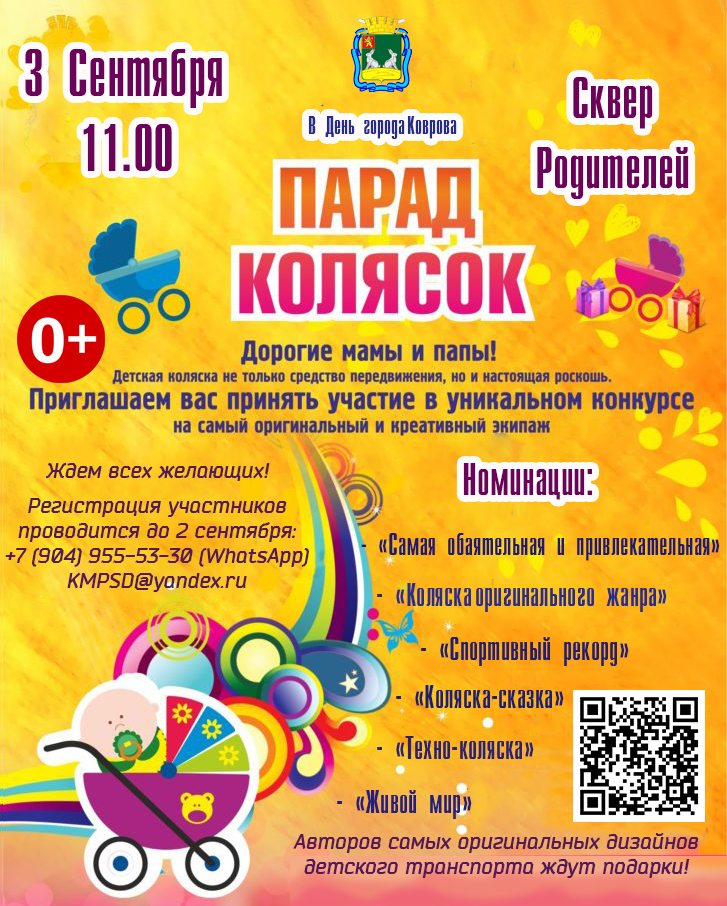 В день города в Коврове пройдет семейный конкурс «Парад детских колясок». Мероприятие состоится в сквере Родителей.