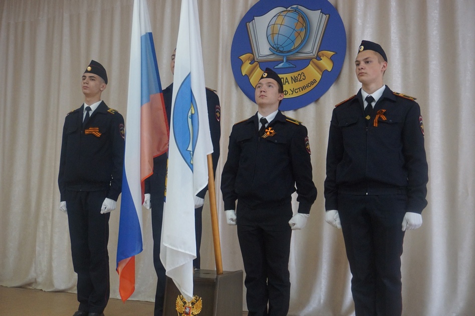 Линейка состоялась в школе №23. Право вынести флаг России и флаг школы №2323 предоставили лучшим кадетам Владиславу Белозерову, Владиславу Исаеву и Владиславу Шарову. Затем учащиеся и педагоги хором исполнили гимн РФ.