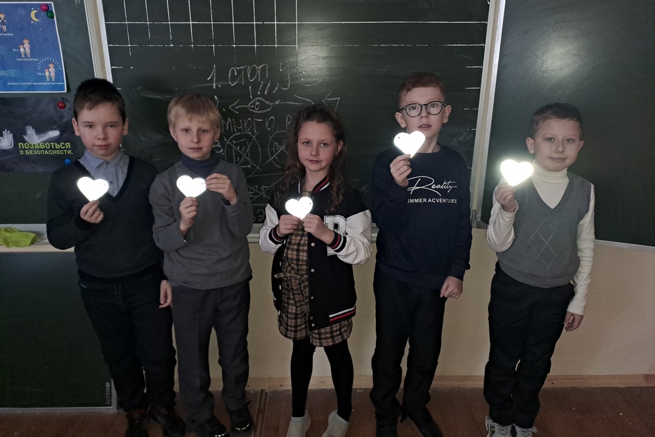 Далее ребята из МБОУ СОШ №8 вместе с инспектором и активистами из отряда ЮИД изготовили брелоки из световозвращающей бумаги в форме сердечек. По окончании занятия, каждый ребенок разместил у себя на рюкзаке «сердечко безопасности», которое в темное время суток, при попадании на него света фар автомобиля, сделает детей яркими пешеходами и поможет водителям вовремя заметить ребят,снизить скорость и остановиться перед пешеходным переходом.