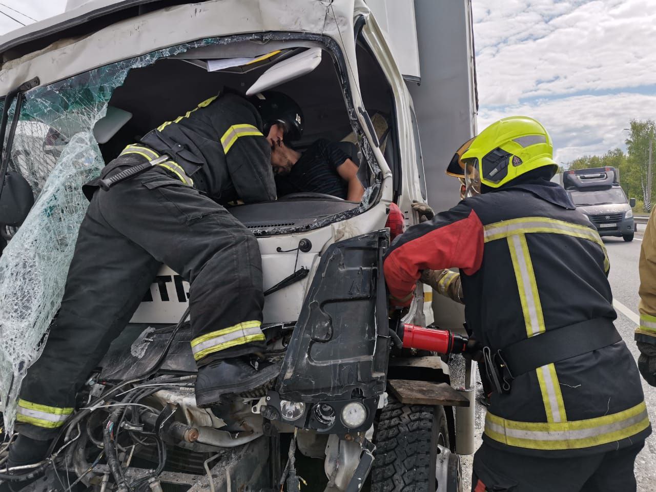 Сотрудники МЧС России деблокировали и спасли пострадавшего в ДТП в Вязниковском районе. Сегодня утром на 297 км трассы М-7 «Волга» произошло столкновение двух грузовых машин. В результате ДТП пострадал водитель. Сотрудники МЧС деблокировали пострадавшего и передали медикам.