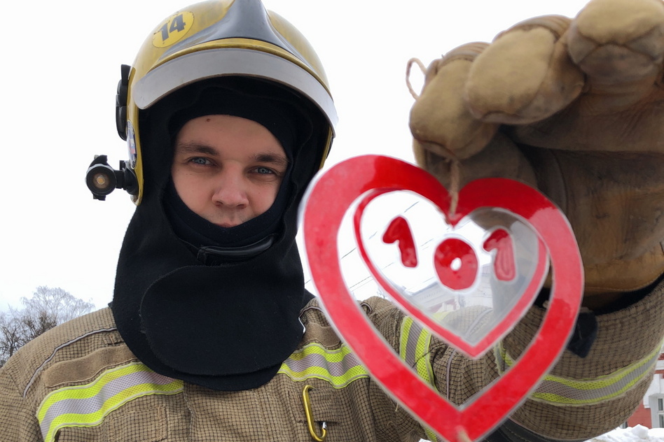Сегодня, в День всех влюблённых, памятки от пожарных выглядели, как валентинки – сердечки с номером телефона пожарных 101 и конфеты в виде пожарных машинок. Их огнеборец Никита Булатов вручал в течение дня всем прохожим около 14 пожарно-спасательной части.
