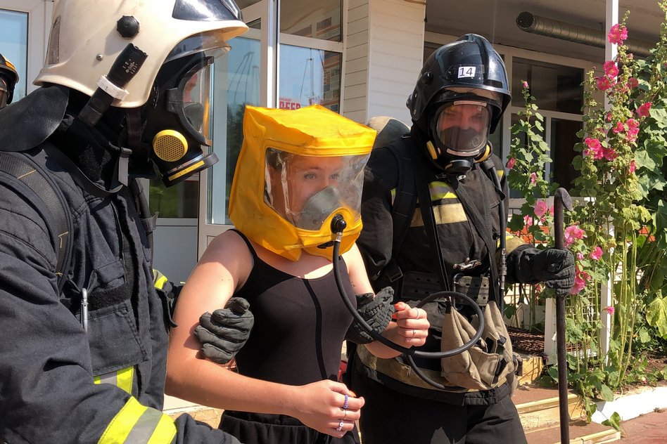 Очередное занятие прошло в лагере «Березка» Ковровского района. Сотрудники пожарной охраны города Коврова провели тренировочную эвакуацию из самого большого здания в лагере, в котором находятся столовая, спортзал, библиотека и административные помещения. По легенде тренировки возгорание произошло на первом этаже в спортивном зале, все дети и персонал смогли вовремя эвакуироваться, кроме одной девочки, которая оказалась заблокирована продуктами горения на втором этаже.