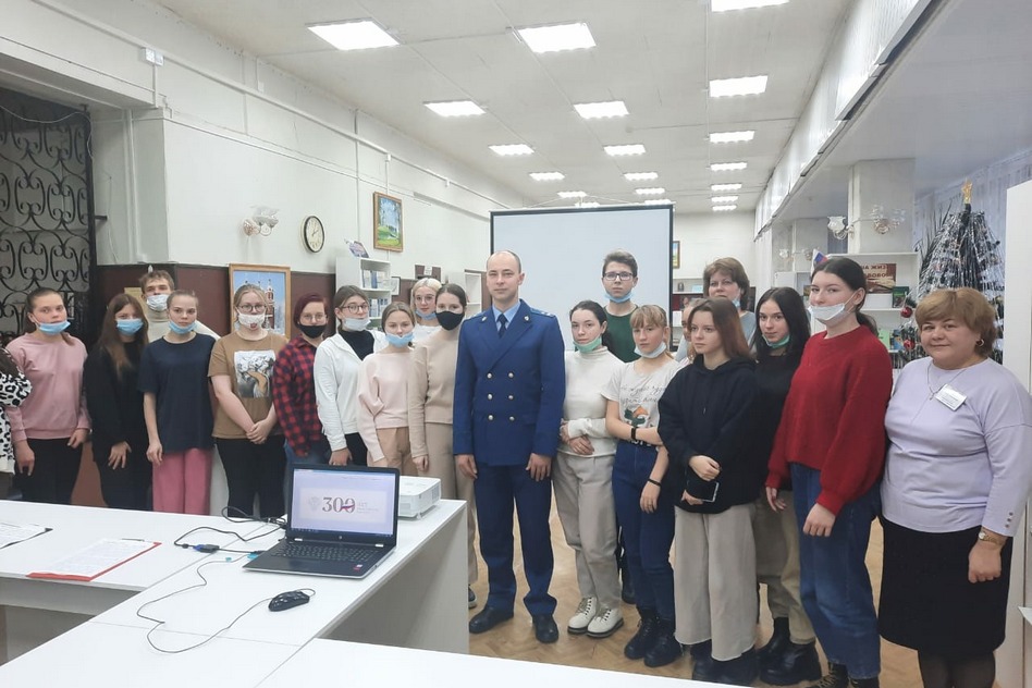 15 декабря в читальном зале Центральной городской библиотеки имени С. К. Никитина МБУК «ЦБС г. Коврова» сотрудник прокуратуры города Коврова встретился со студентами колледжей. Визит прокурора приурочен к памятной дате – 300-летию со дня образования органов прокуратуры, которая будет праздноваться 12 января 2022 года.