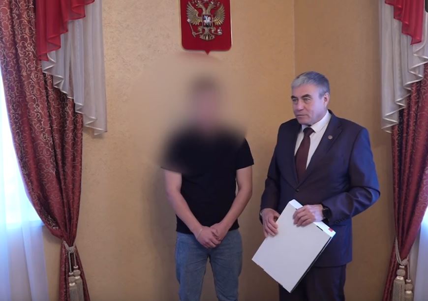 Мэр Ковровского района Вячеслав Скороходов вручил воину, прибывшему в отпуск из зоны проведения СВО, детектор подавления БПЛА «Булат».