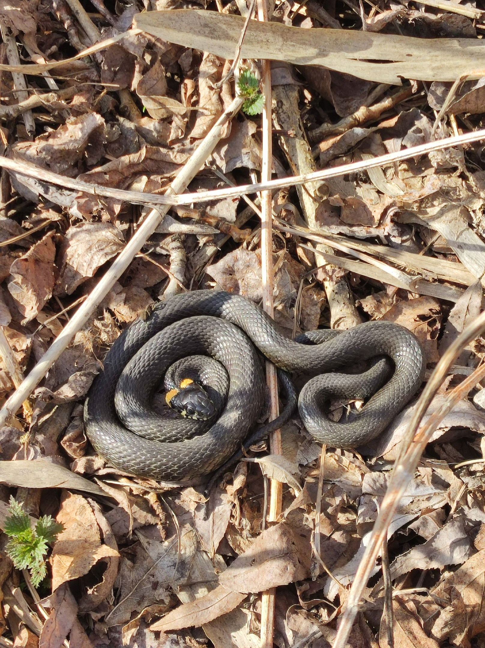 Змеи могут быть замечены в их привычных местах обитания, где они отогреваются под солнцем. Затем они начинают искать пищу и места для обживания. По большей части можем наблюдать ужей, но уже есть сигнал и о гадюках.