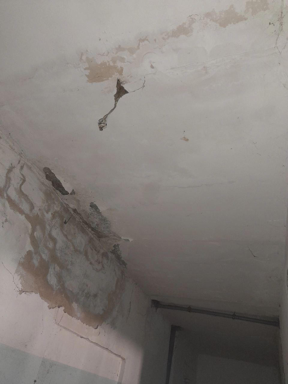 Обнаружены повреждения цоколя, отмостки, фасада, козырьков, крылец и ступеней входных групп. Кроме того, выявлены нарушения в обустройстве продухов подвальных помещений, которые не оборудованы жалюзийными решетками. В подъездах зафиксированы деформации лестничных маршей, а входные двери не обеспечивают плотного притвора.