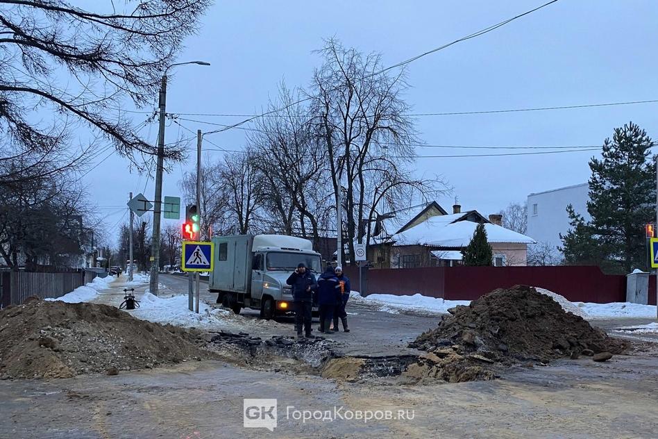 Сегодня, 19 января, во второй половине дня коммунальная авария в центре Коврова привела к блокировке движения автотранспорта по улице Ватутина. Маршрутные автобусы вынуждены были изменить маршрут движения и поехать в объезд.