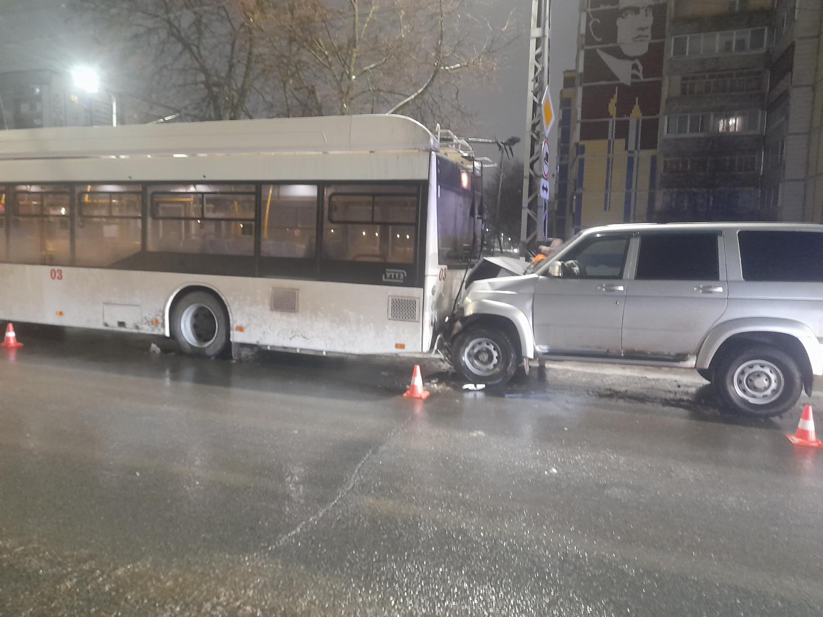 По предварительной информации ГИБДД, 31.12.2022 г. в 17 час. 00 мин. в городе Коврове, у дома 9 по улице Грибоедова, водитель 1966 г.р., управляя автомобилем УАЗ Патриот (в состоянии опьянения), при движении со стороны ул. Либерецкая в сторону ул. Зои Космодемьянской не выбрал безопасной дистанции до движущегося впереди транспортного средства, при этом произошло столкновение с троллейбусом под управлением водителя 1977 г.р. В результате ДТП телесные повреждения получил пассажир автомобиля УАЗ Патриот. Предварительный диагноз: ушиб грудной клетки, ушиб правого колена, ушиб нижней челюсти.