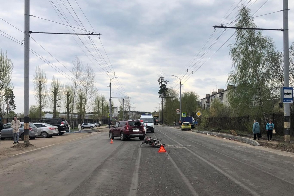 По предварительной информации ГИБДД, 06.05.2021 г. в 16 час. 50 мин. в г. Коврове у дома 16 по ул. Муромской, водитель 1997 г.р., управляя мотоциклом Восход 3М-01, при движении по ул. Муромской со стороны ул. Социалистической в сторону ул. Колхозной, не выбрав безопасную дистанцию, совершил столкновение с автомобилем РЕНО ДАСТЕР, под управлением водителя 1979 г.р.. Мотоциклист управлял мотоциклом без мотошлема и не имея права управления транспортными средствами, в результате ДТП получил телесные повреждения в виде ЧМТ, СГМ, рваной раны лица.