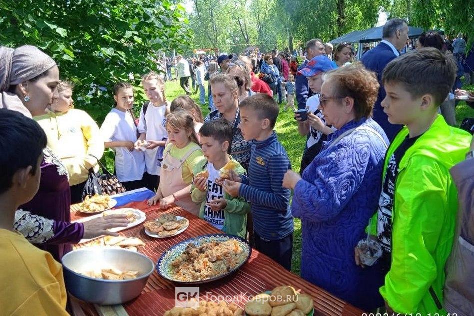Когда все добрые и правильные слова со сцены были сказаны, а все песни пропеты, городское начальство вместе с народом-зрителями, взялось за руки, образовался хоровод. И люди кружили в хороводе и пели. А в центре хоровода, подвешенный на гроздь воздушных шаров, был «венок дружбы». Его отпустили в небо, что стало символом крепкой дружбы всех народов и народностей, которые проживают на территории Коврова.