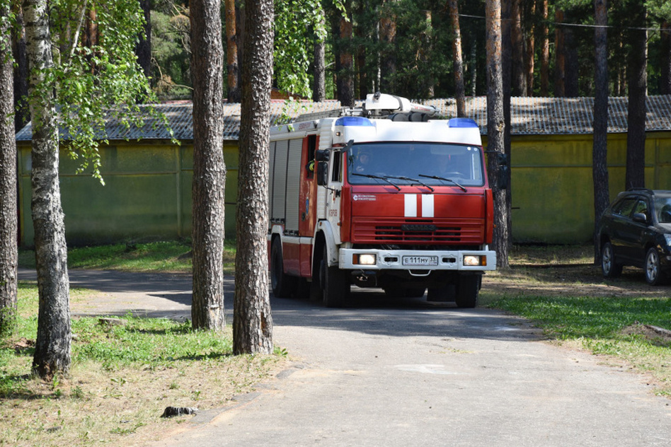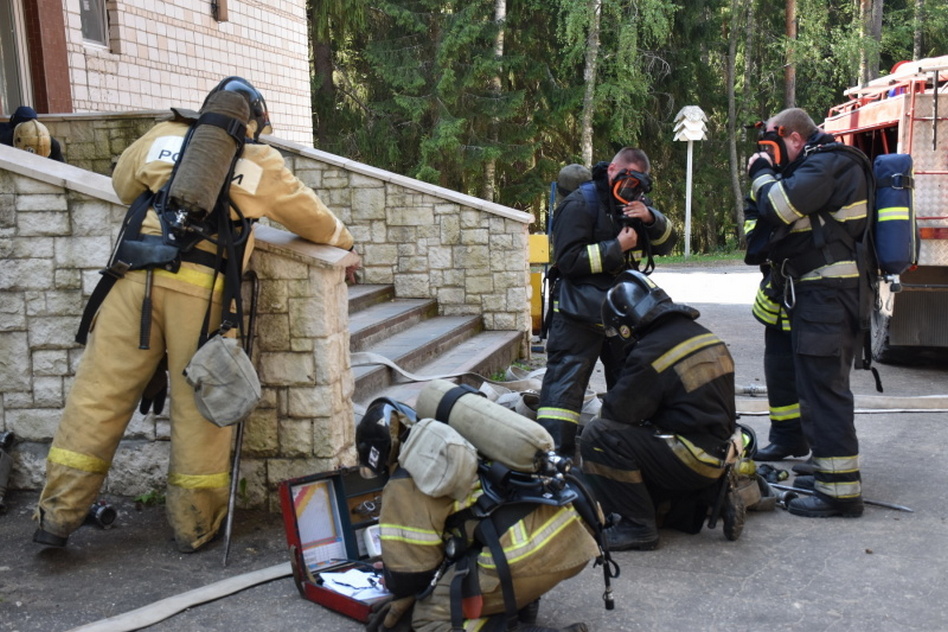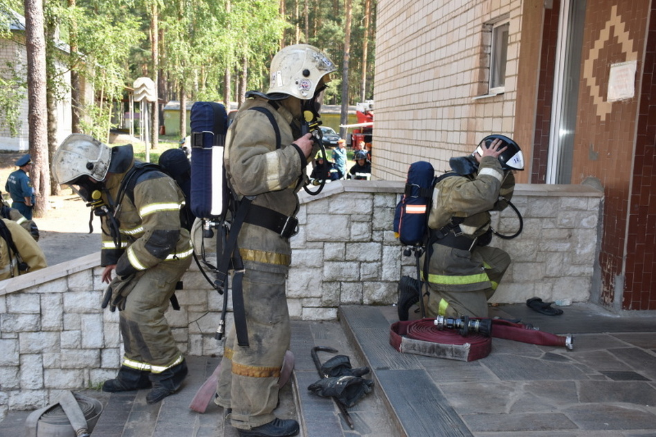 По замыслу учений вследствие аварийного режима работы электрооборудования произошло короткое замыкание с последующим возгоранием в комнате на втором этаже корпуса № 2. Вожатые сообщили о возникновении пожара в пожарную охрану, отключили электроэнергию, организовали встречу прибывающих пожарных подразделений. В комнатах на втором и третьем этажах остались дети. Так как учения проходили между сменами, роль пострадавших пришлось играть сторожам.