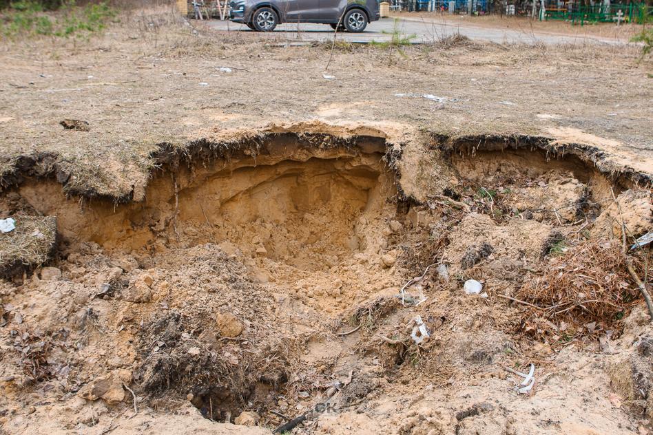 Расширение кладбища явно поставлено на поток. Котлован, расположенный рядом, это добыча песка для организации новых мест вечного упокоения.
