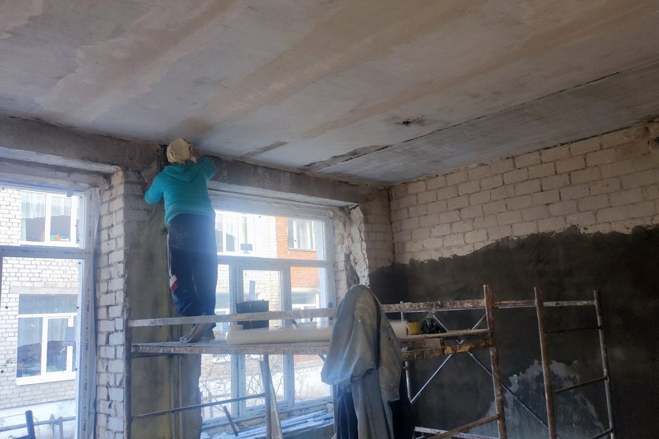 «Закончены работы по замене окон на новые. Во-первых, от старой штукатурки уже очищены стены и потолок. Во-вторых, начались шпаклёвочные работы. Временно исполняющий полномочия главы города Сергей Сидорин поддержал предложение директора детсада о полной замене полов в группе и кафеля в санузле. Группа фактически будет капитально отремонтирована полностью».