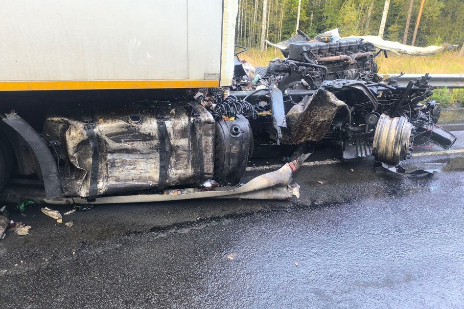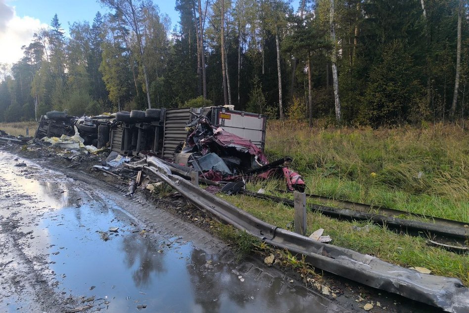 «20 сентября около 11:55 в Ковровском районе, на 259 км + 250 м а/д М-7 «Волга», водитель 1987 г.р., управляя грузовым автомобилем «Скания» в составе с полуприцепом «КУПАВА» двигаясь со стороны г. Владимира в сторону Нижнего Новгорода совершил наезд на межосевое барьерное ограждение, выехал на полосу, предназначенную для встречного движения, где совершил столкновение с грузовым автомобилем «Вольво» в составе с полуприцепом «КРОНЕ». В результате ДТП водитель а/м «Скания» скончался на месте ДТП до приезда скорой медицинской помощи. Водитель а/м «Вольво» получил телесные повреждения».