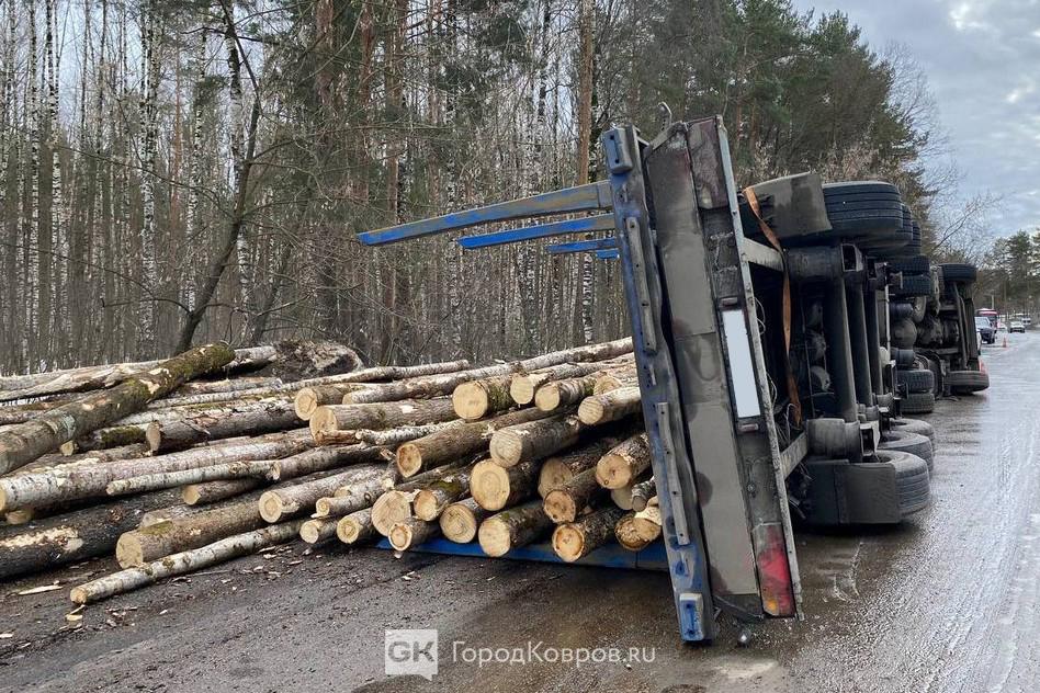 Вчера днем на ковровской объездной дороге (улица Муромская) перевернулась фура с лесоматериалами. Сегодня сотрудники ГИБДД сообщили предварительную информацию о ДТП.