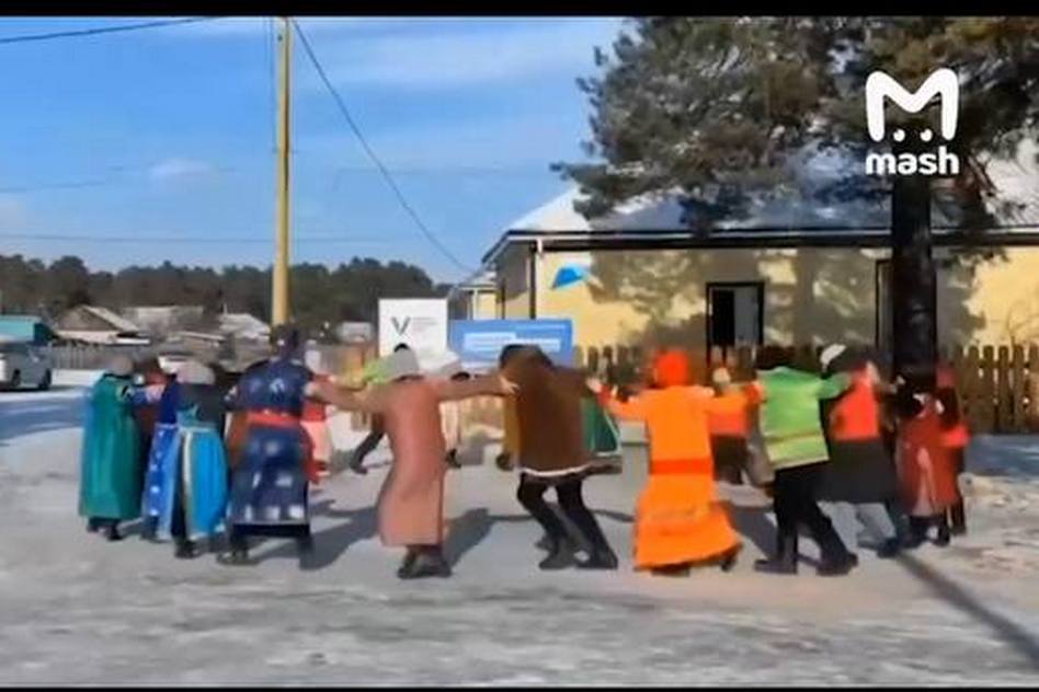 В Бурятии возле избирательного участка водили хоровод в национальных костюмах.