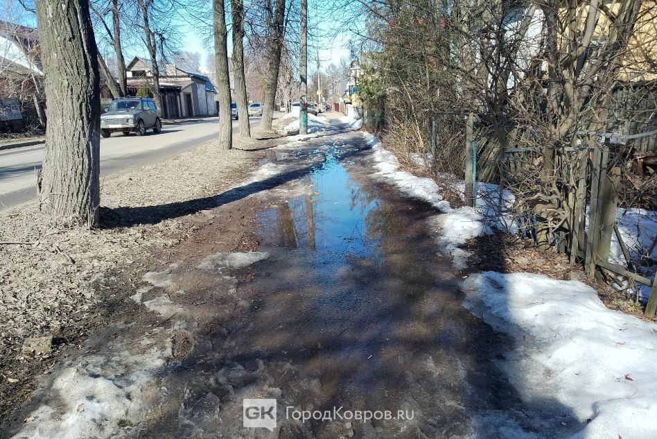 Мы немного прогулялись по улице Ватутина. Тут парадоксальная ситуация. Снег, которые сгребали всю зиму с дороги, на обочинах активно тает, его почти нет. А на тротуаре он ещё лежит толстым слоем. Местами он превращается в жидкую кашу, которую приходится обходить по грязи. Те, кто ходит здесь регулярно, жалуются в соцсетях: из этого района снег не вывозили. Заметим: в городе сугробы вывозить продолжают, не уповая на то, что «само растает».