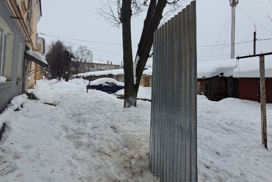 На улице Димитрова, 51, вместе со снегом слетел лист металла, которым была покрыта крыша. Чудом обошлось без пострадавших.