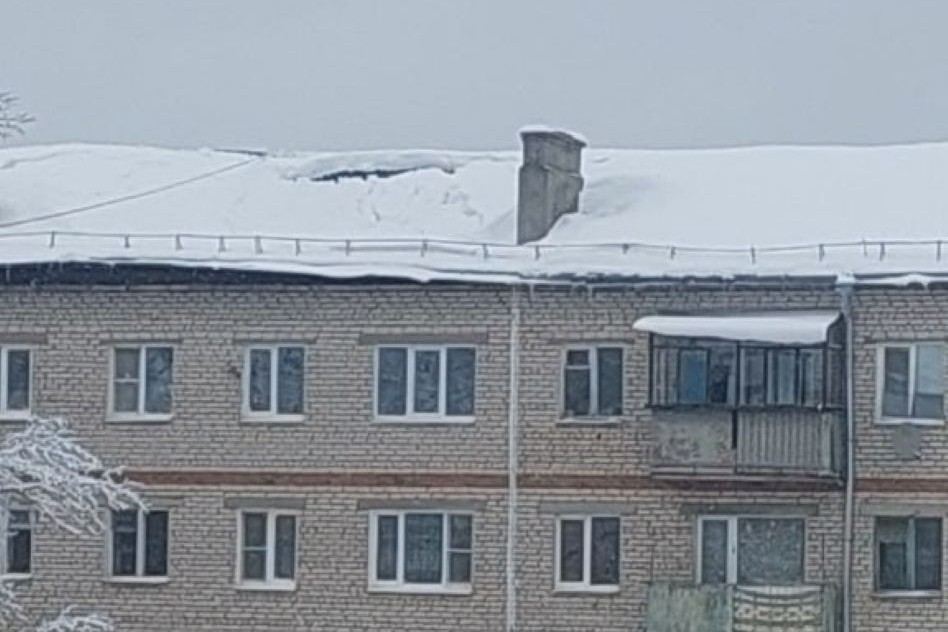 В пятиэтажке на улице Космонавтов, 2/2, участок крыши провалился под тяжестью снега. Скорее всего, отсыревший во время оттепели снег прихватил мороз, и он стал ещё тяжелее, отчасти превратившись в лёд.