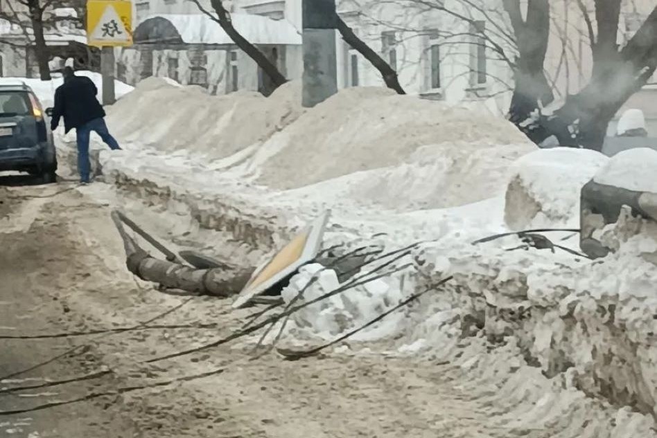 Как сообщает подписчик паблика, столб упал ещё 22 февраля, причём между двумя едущими машинами. Конструкция чудом никого не задела в плотном потоке.