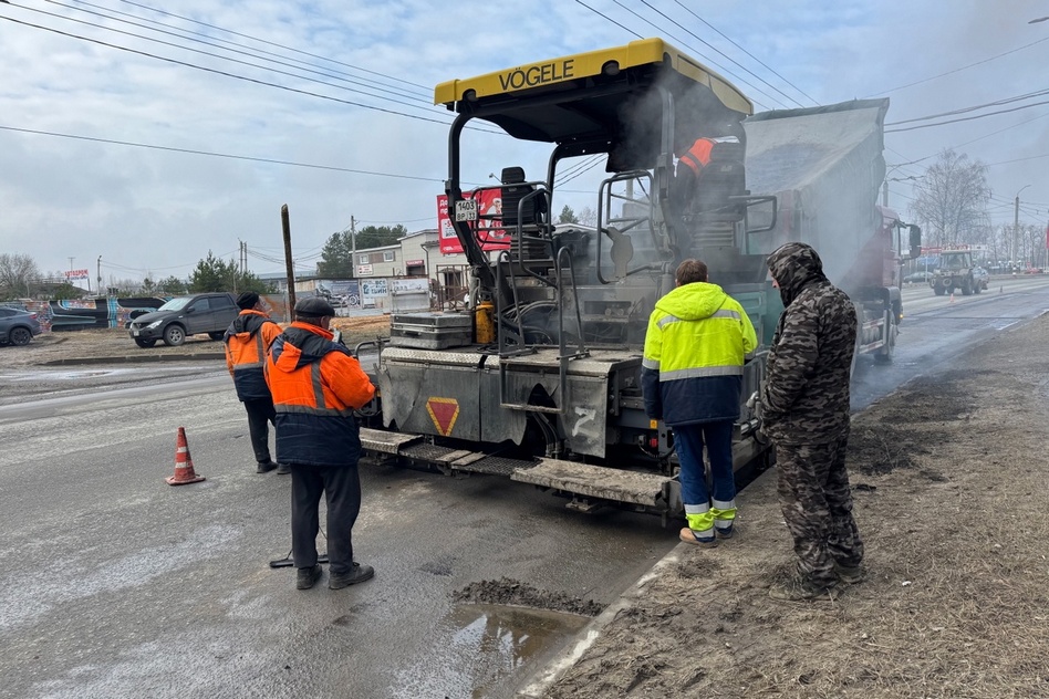 Сегодня, 27 марта, на улице Еловой активизировались работы по асфальтировке проезжей части. Накануне проблемные участки были отфрезерованы.