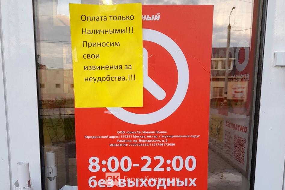 В Коврове супермаркеты «Верный» располагаются на улицах Космонавтов (рядом с «Сударем») и на Строителей (рядом со Сбербанком). Вчера (в воскресенье) в магазине на улице Космонавтов банковские карты к оплате не принимались.