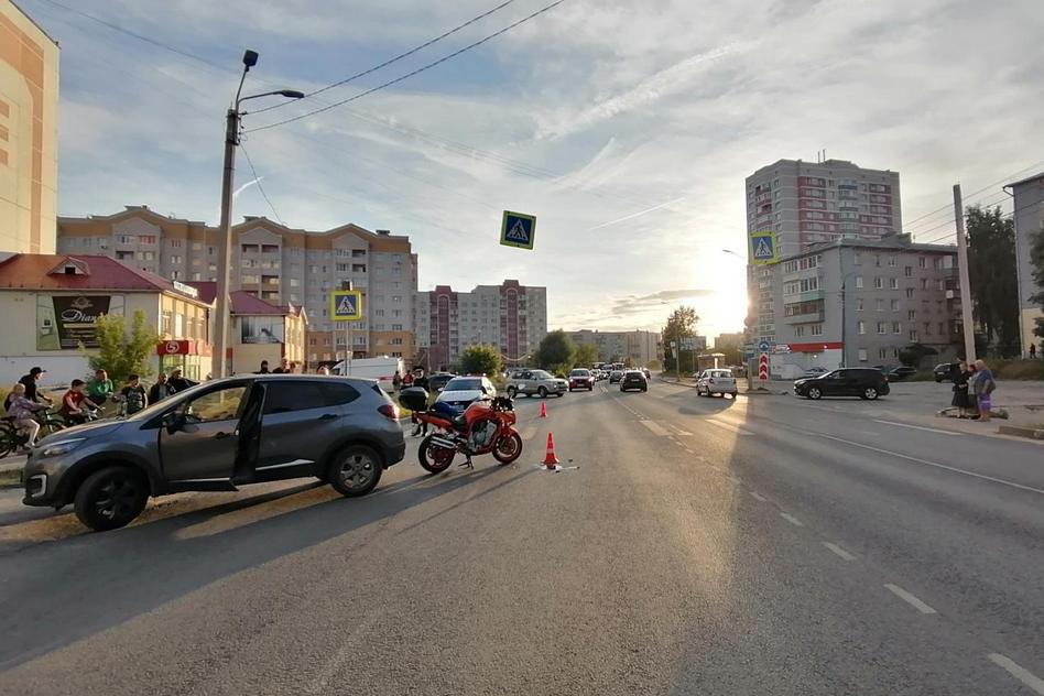 В 17:30 на перекрестке улиц Еловая и Зои Космодемьянской напротив дома №1/1 по ул. Космонавтов 49-летний водитель управлял автомобилем «Chevrolet Tahoe» при выполнении маневра поворота налево заблаговременно не занял соответствующее крайнее положение на проезжей части при этом произошло столкновение с мотоциклом «Kawasaki» под управлением 48-летнего водителя, который двигался в попутном направлении прямо, без изменения направления движения. В результате ДТП телесные повреждения получила пассажир «Kawasaki». Предварительный диагноз: ушибленная ссадина правого колена.