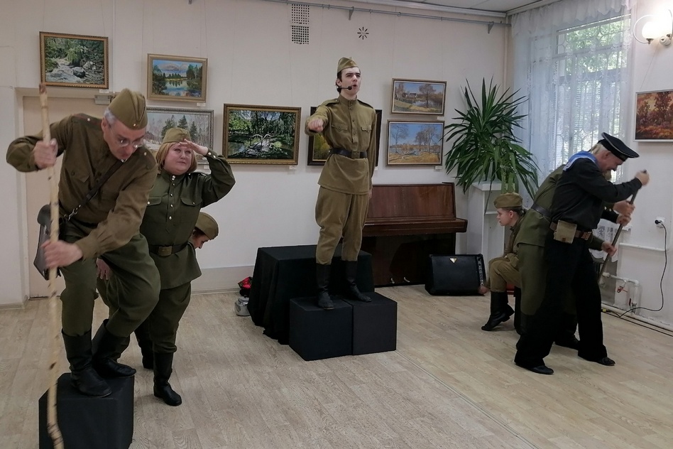 В визит-зале центральной городской библиотеки им. С. Никитина с успехом прошел спектакль народного музыкально-драматического театра «Поиск» ( реж. Т. Санникова), «Фронтовые истории Василия Тёркина» (главы из поэмы). Вместе с героями легендарной поэмы зрители прошли по суровым дорогам войны, на которых солдатская отвага и героизм запросто уживались с веселой шуткой, озорной байкой и, конечно же с хорошей песней.