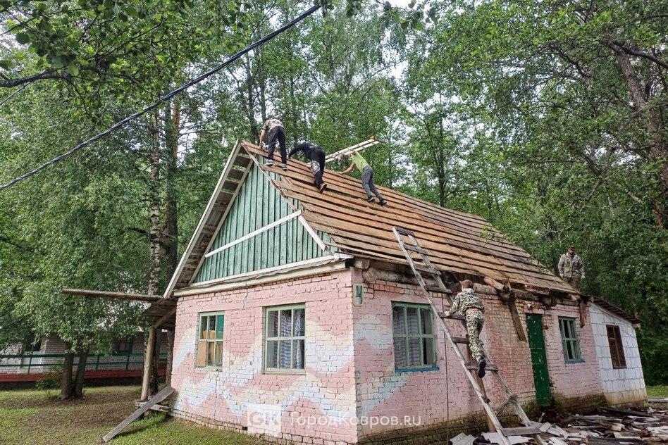 - Готовим корпус к заезду, своими силами совместно с родителями и детьми, за сутки перекрыли крышу.