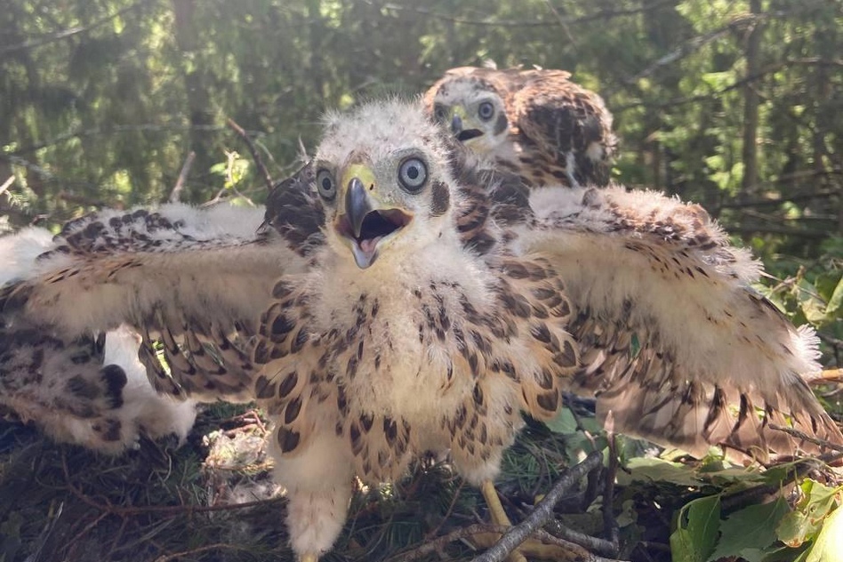 Редкие кадры, гнезда ястреба тетеревятника с взрослыми птенцами сделали специалисты госохотинспекции Владимирской области.