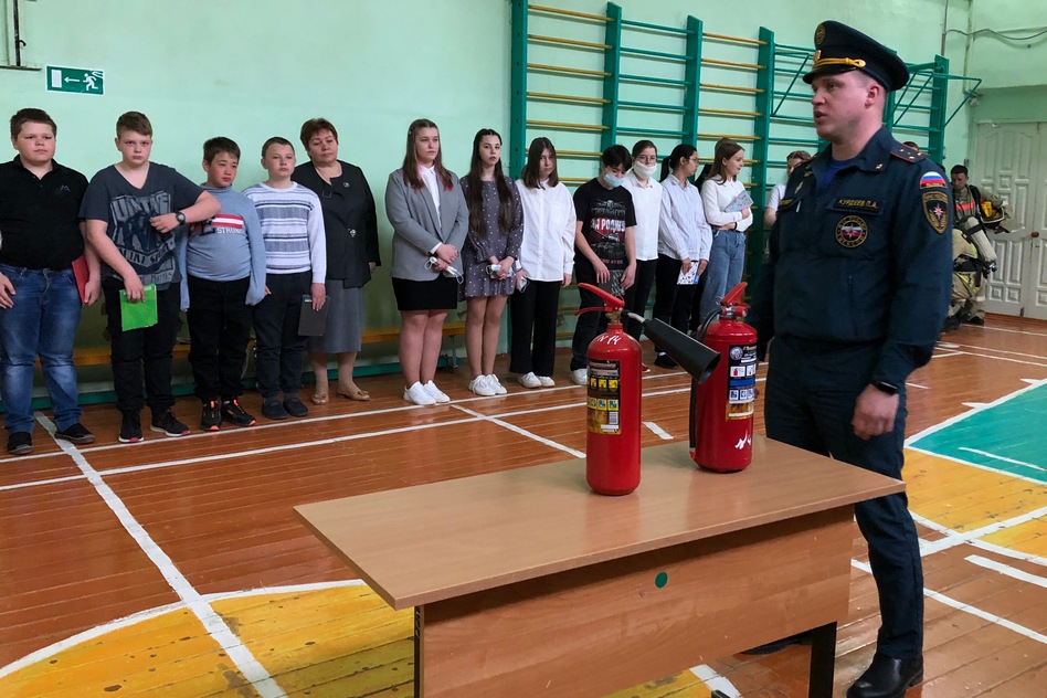 Начальник 35 пожарно-спасательной части Павел Курдеев напомнил детям, как пользоваться огнетушителем, а также рассказал, какие подручные средства тушения огня есть дома: «Земля из цветочных горшков, вода, но не только из-под крана, а еще ее можно взять в аквариуме, в чайнике, и даже сок и молоко из холодильника поможет потушить маленькое, только что начавшееся, возгорание».