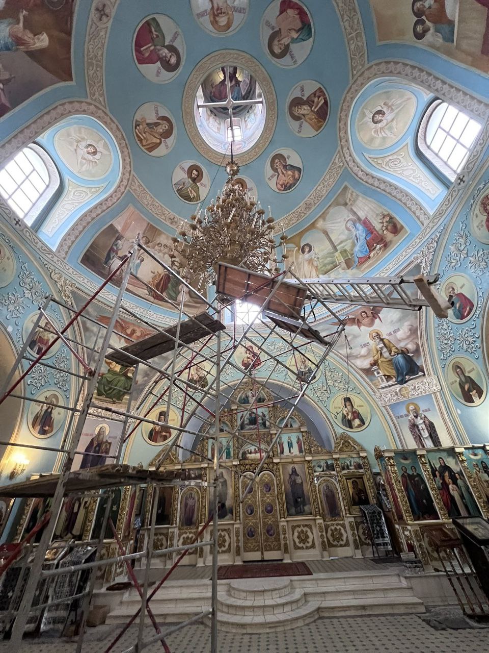 «Строительные леса, находящиеся внутри храма, начали падать и зацепились за люстру, и повисли на ней. По какой причине это произошло — неизвестно.