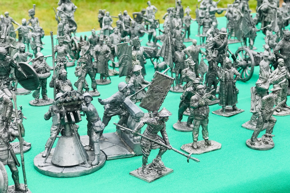 Вдоль дорожки перед лужайкой разместились традиционно разные рукодельники, вкусности и небольшие развлечения для детей, такие как беспроигрышная лотерея из шариков, разные виды тира с призами, а так же увидела я необычное – стол с оловянными солдатиками. Чтобы вы понимали масштабы стола – метра два с лишним в длину, уставленные самыми разными солдатиками. Мальчишкам, да и взрослым мужчинам было очень интересно.