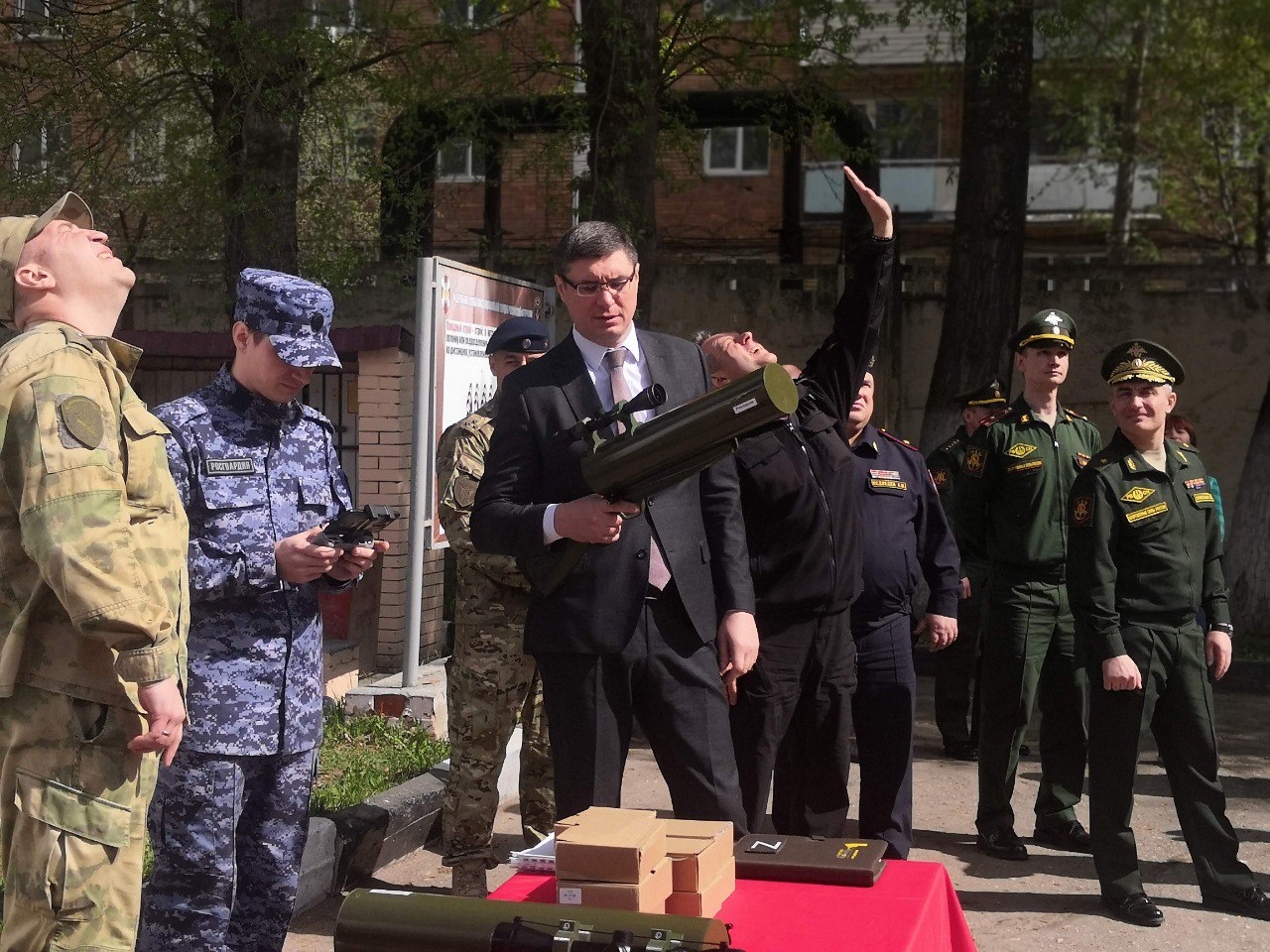 Губернатор сделал несколько фото в компании с работниками силовых структур, позировал с антидроновым ружьём в руках. О том, пробовал ли глава региона применять оружие, не сообщается.