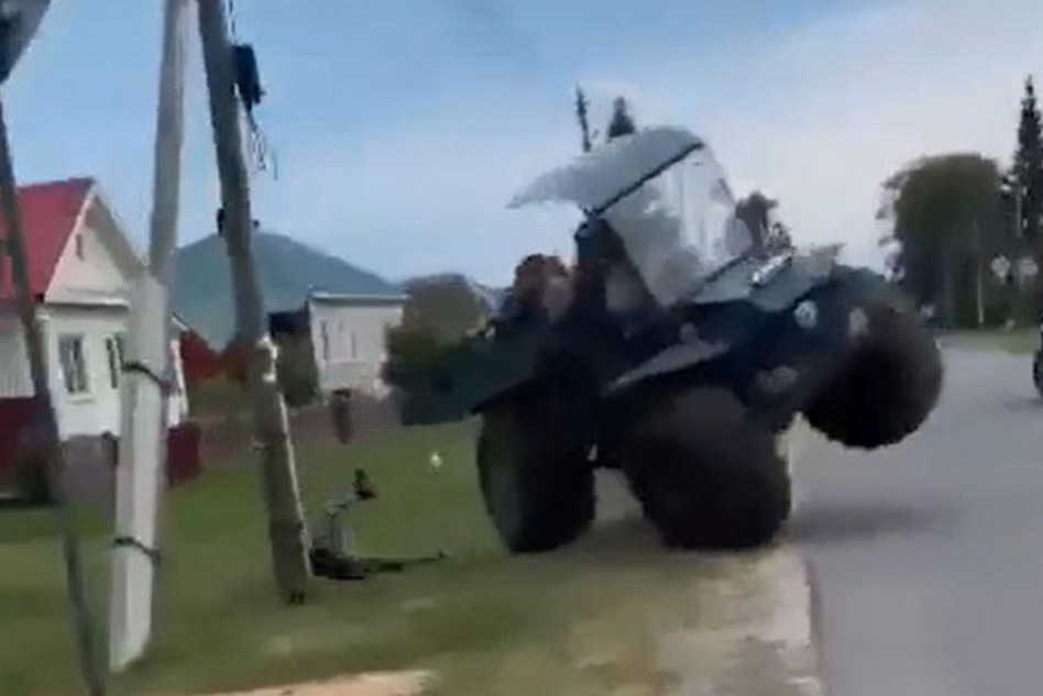 Сотрудники ГИБДД пытались перегородить дорогу угонщикам, которые разъезжали по населенному пункту, однако болотоход смог обойти служебный автомобиль. Как стало известно, транспортное средство принадлежало одному из школьников.