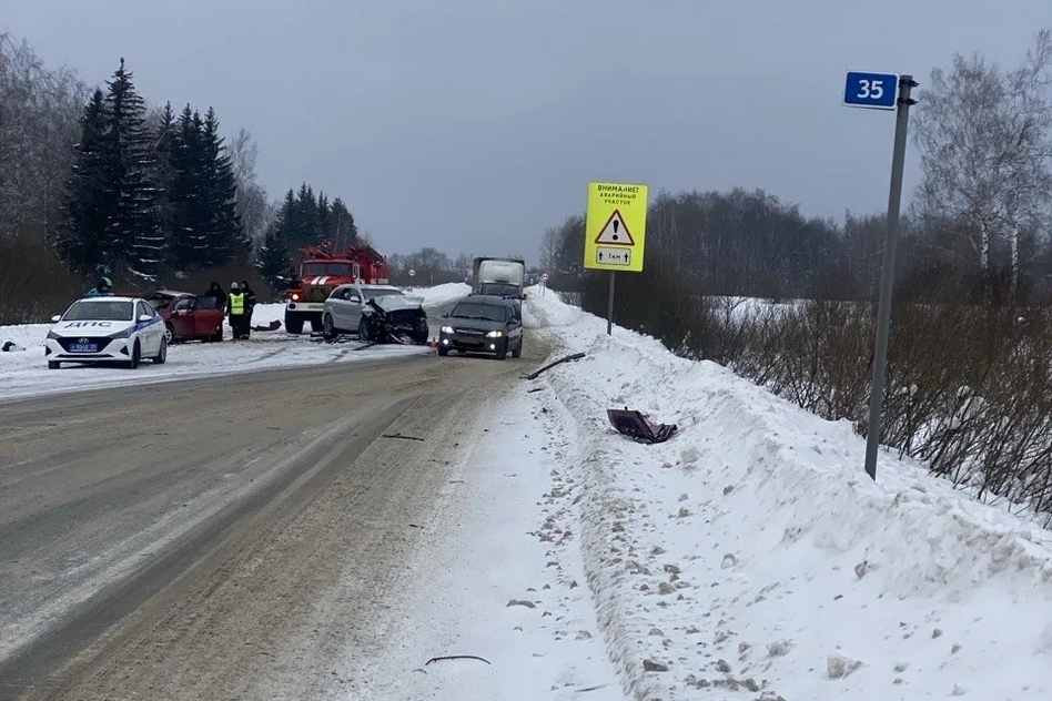 По предварительным данным, водитель автомобиля «Ниссан» 1974 года рождения, двигаясь в сторону Кольчугина, выехал на полосу встречного движения. Там иномарка совершила касательное столкновение с большегрузным автомобилем, после чего столкнулась с автомобилем «Ауди», следовавшим за фурой.