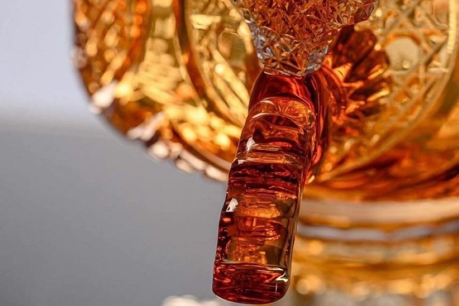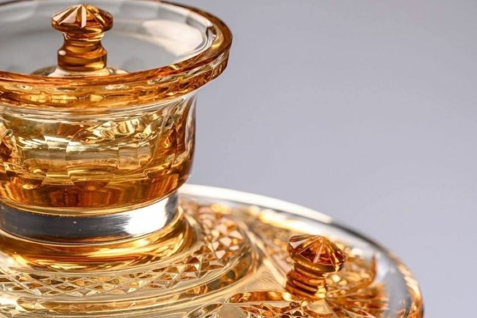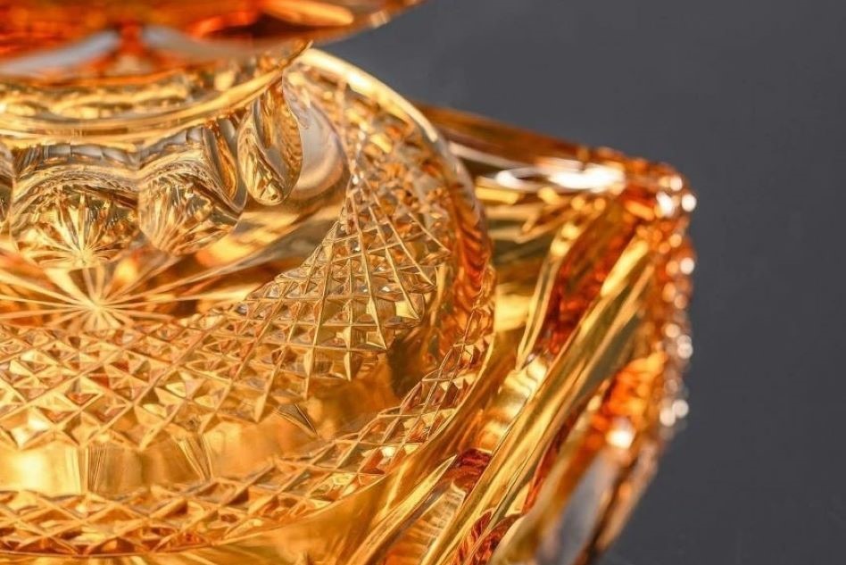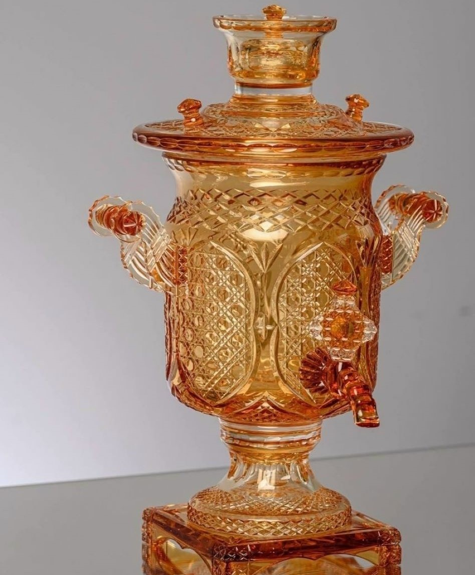 В каталоге работ Гусевского хрустального завода появился невероятный хрупкий шедевр. Золотистый хрустальный самовар с несколькими тысячами граней создал художник завода Александр Грызунов.