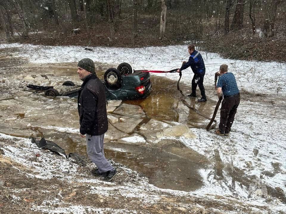 Ковровчане вызвали спасателей и медиков, Михаил Гарин остановил проезжавшую фуру, и водители все вместе с помощью троса вытащили авто и поставили его на колёса. Вскоре подъехали спасатели и с помощью гидравлических спасательных инструментов деблокировали пострадавшего 19-летнего водителя.