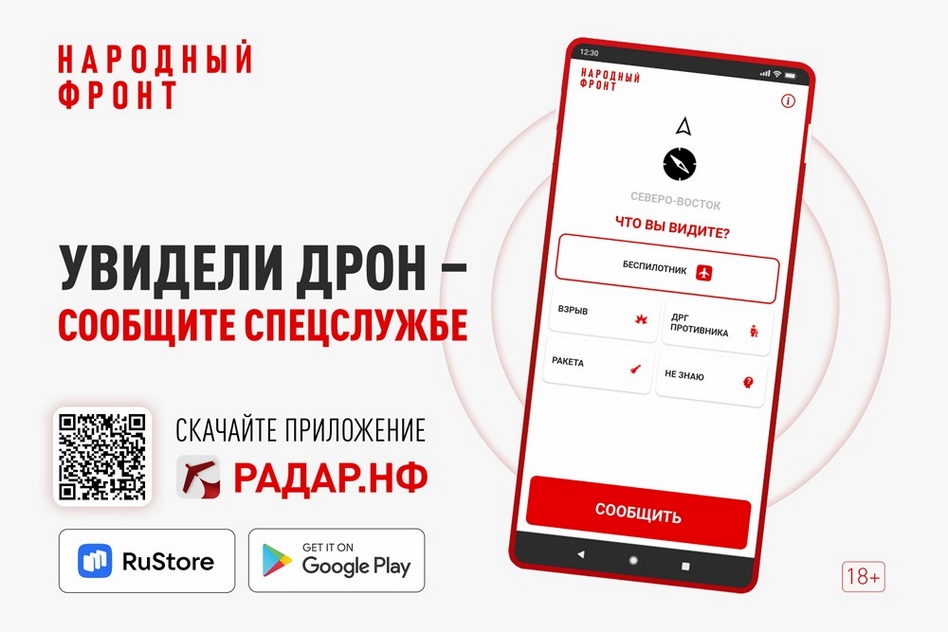 В России запустили мобильное приложение «Радар.НФ», через которое можно сообщить напрямую силовикам о подозрительной активности: пролёте беспилотника, ракеты, взрыве или деятельности диверсионно-разведывательной группы.