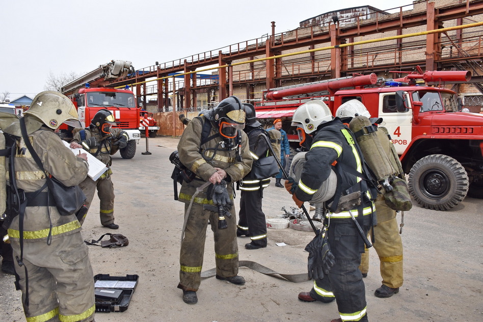 Прибывшие к месту вызова пожарные подразделения приступили к тушению условного огня на территории склада. Звенья газодымозащитной службы встали на защиту смежных помещений.