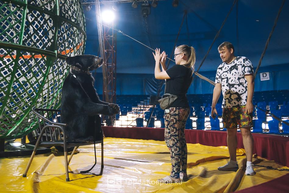 Степан и Борис – гималайцы. В труппе более трёх лет. Это взрослые медведи в расцвете лет и сил. Одного из них – Бориса, на арену, когда мы там находились, привела дрессировщица Лия.