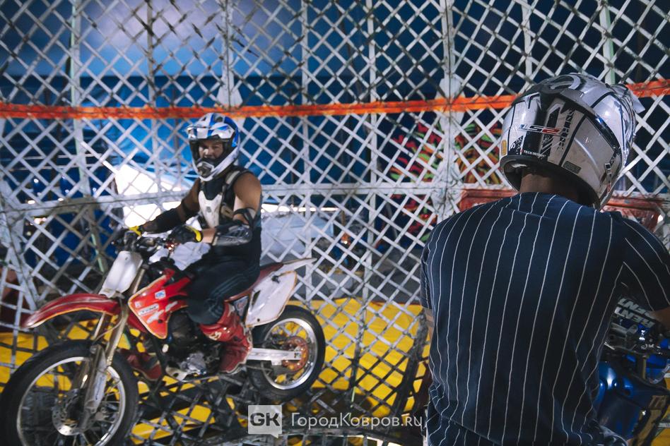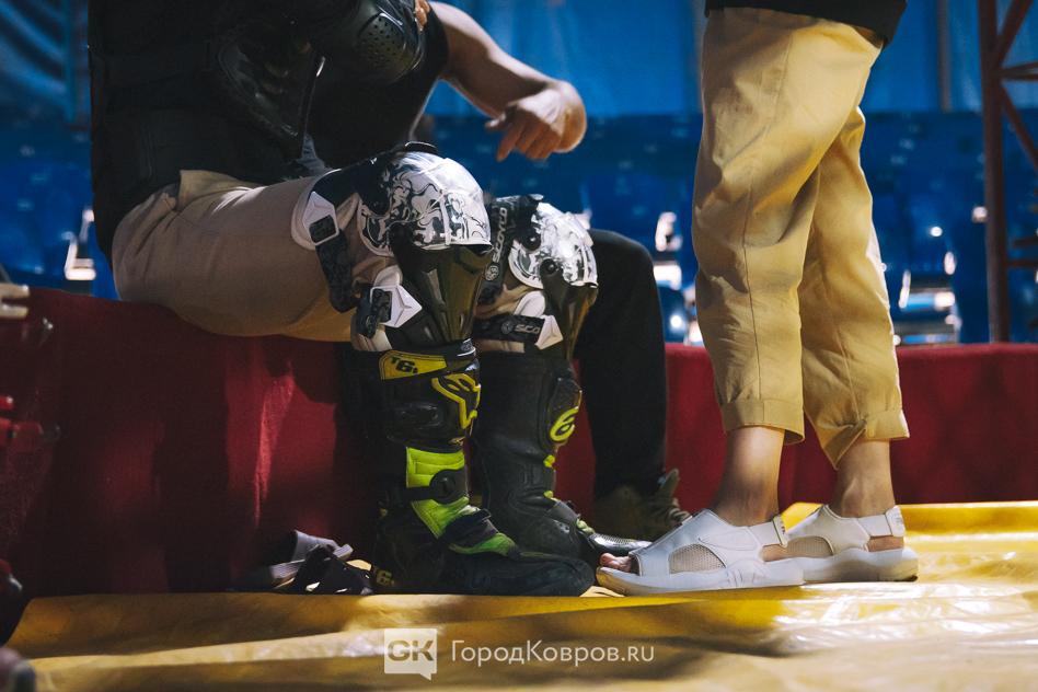 Бодрствовали только те самые заявленные бразильцы. Эльсио и Патрик – уроженцы Бразилиа. Эльсио – потомственный циркач, за океаном его отец выступал в шапито примерно с таким же номером — «Шар смелости». Мотоциклист гоняет внутри шара, разгоняется так, что спорит с гравитацией.