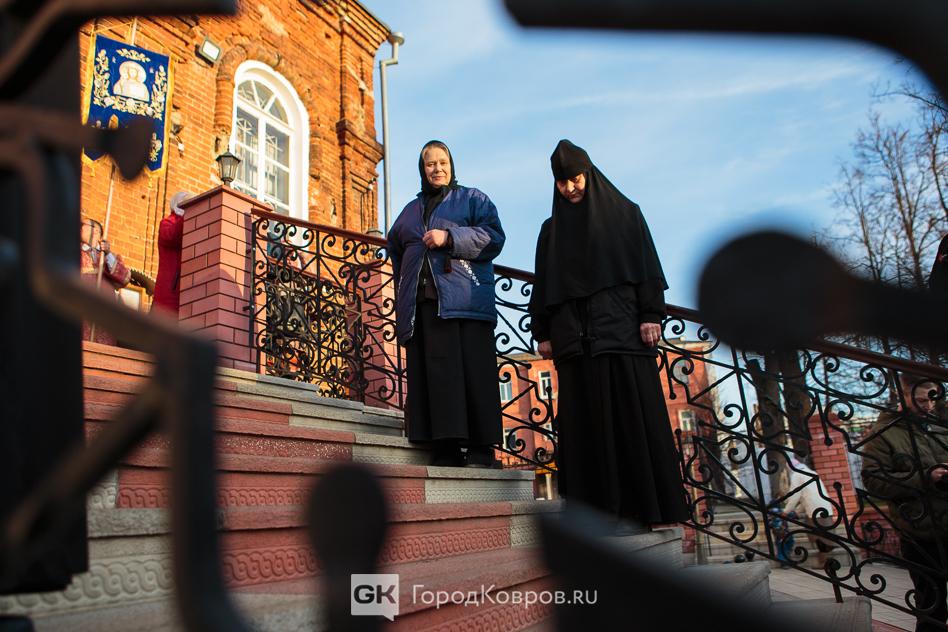 Начала Крестного хода от Свято-Знаменского монастыря ожидали около получаса. Прихожане были в монастырской часовне, молились и ставили свечи.