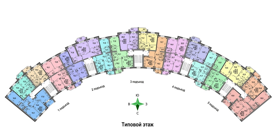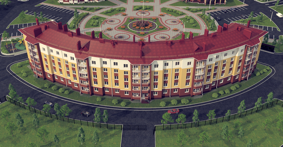 ЖК «Панорама» станет центром и главным украшением микрорайона. Пятиэтажное здание округлой формы само по себе притягательно. Однако если вы посмотрите на планировки квартир, то поймёте – в «Панораме» прекрасен как экстерьер, так и интерьер.
