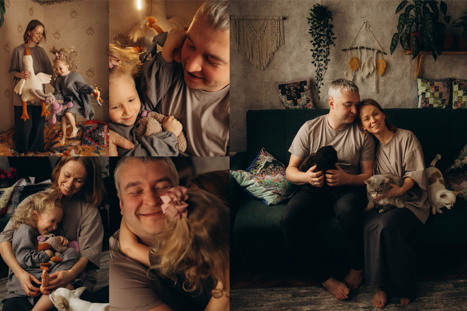 - «Это естественные и комфортные условия. Такие съёмки всегда интереснее студийных, потому что в каждой семье — своя атмосфера. Дома человек максимально расслаблен, он настоящий. Например, новогодние фото: у многих ковровчан одинаковые кадры из одной студии. А дома — совсем другая история, про этих конкретных людей и их ценности. Со временем такие фото будут цениться гораздо больше».