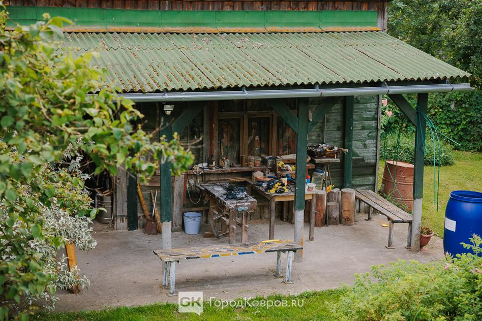 Деревянной скульптурой Наталья Гурьевна занимается с 2002 года. Обычно в загородных домах если видишь деревянный навес с верстаком – это «уголок мужчины». Здесь не так – это чисто женское царство.