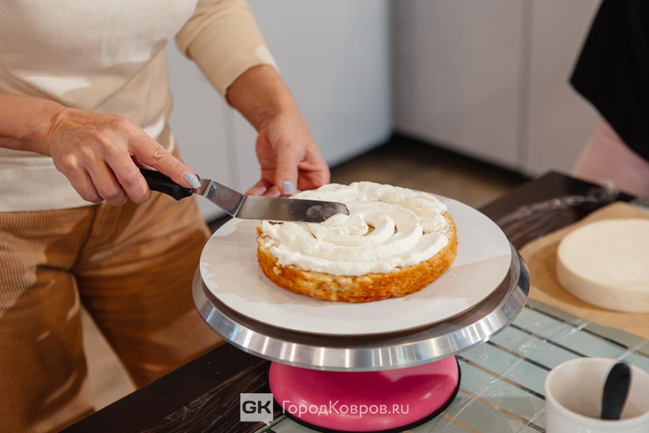 Интересным было выравнивание крема специальным кондитерским шпателем. Как и в случае со срезанной верхушкой коржей, все излишки крема безжалостно удалялись и устранялись. Мысленно прикидывала: сколько же продуктов уходит в брак!.. Аня с улыбкой заметила: