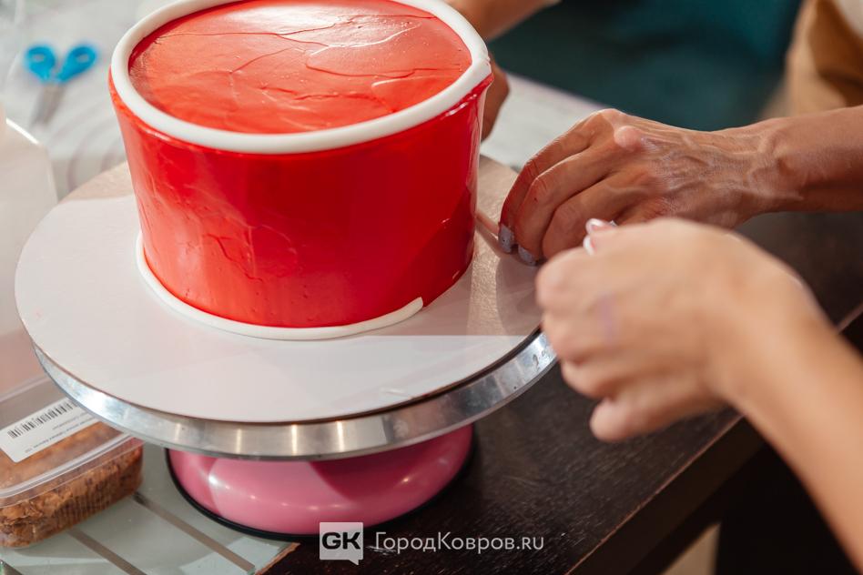 Предстояло самое ответственное — сделать вкусный тортик ещё и эффектно-красивым. Для этого «на сцену» выдвигается кондитерская мастика.