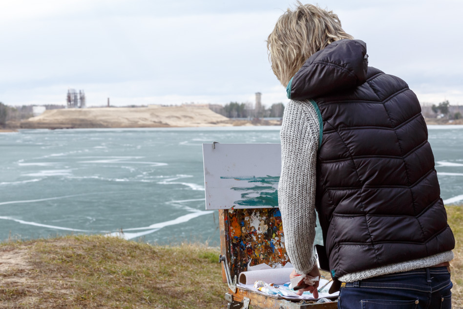 Оказалось, чтобы написать пейзаж, одного мастерства недостаточно. Необходимо противостоять погодным условиям. В нашем случае это был пронизывающий холодный ветер.